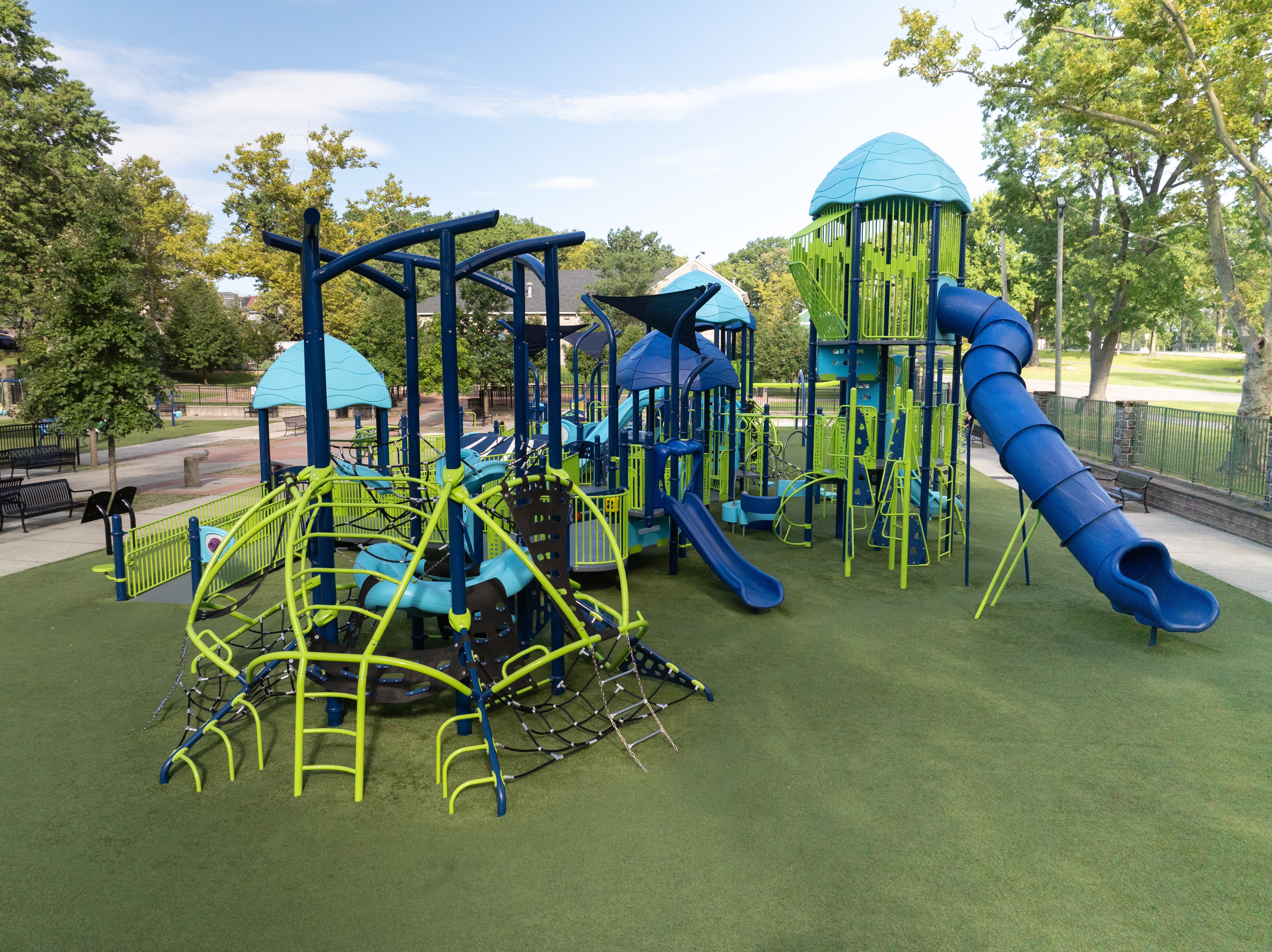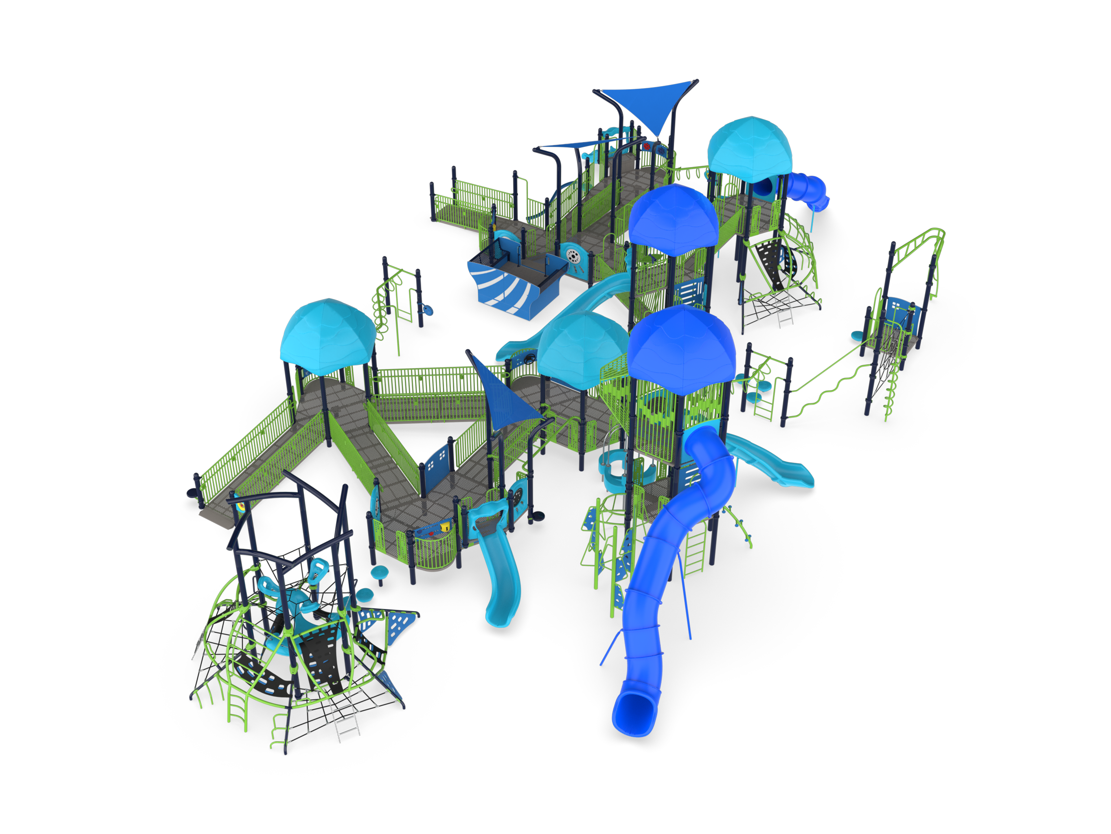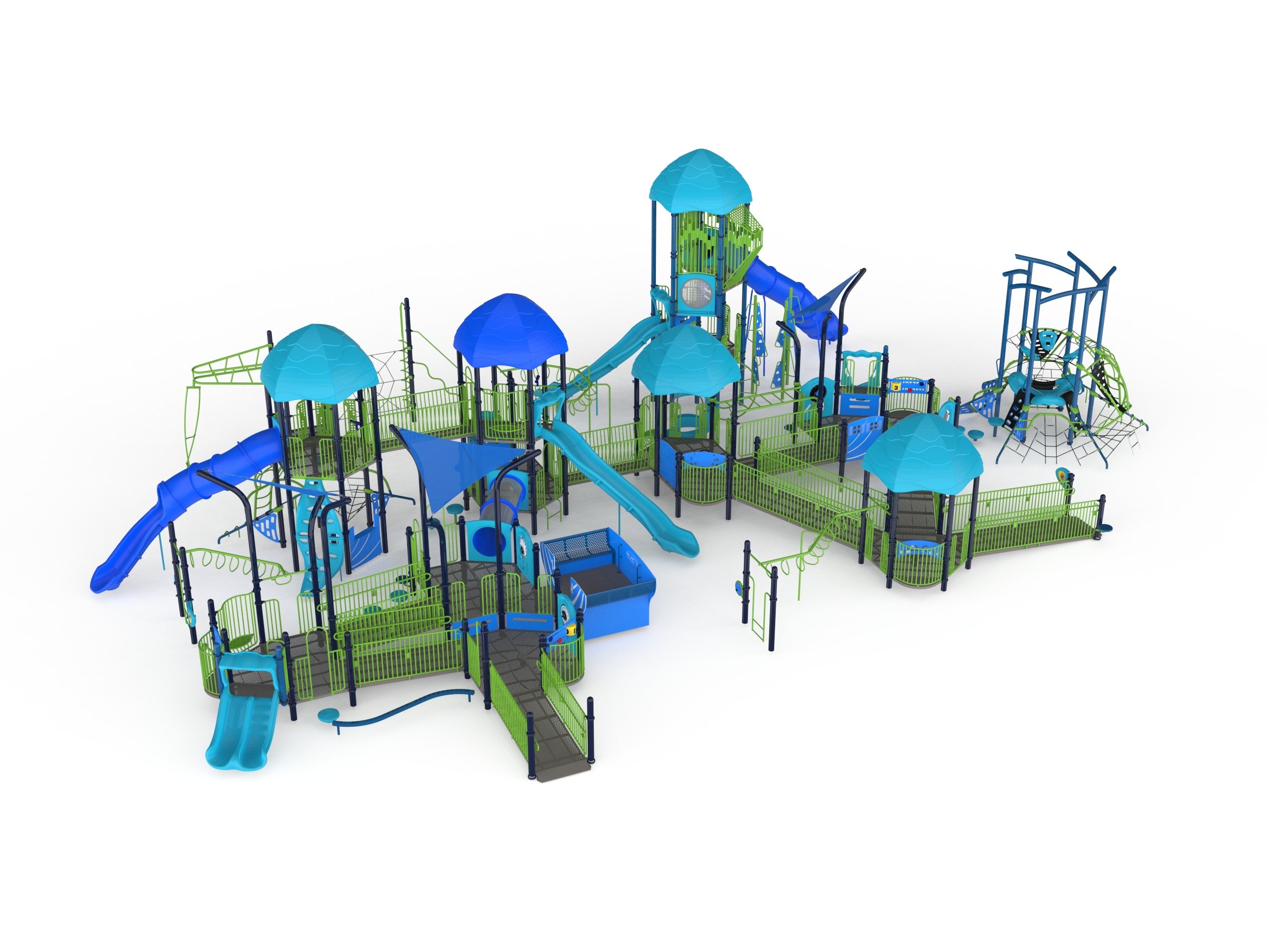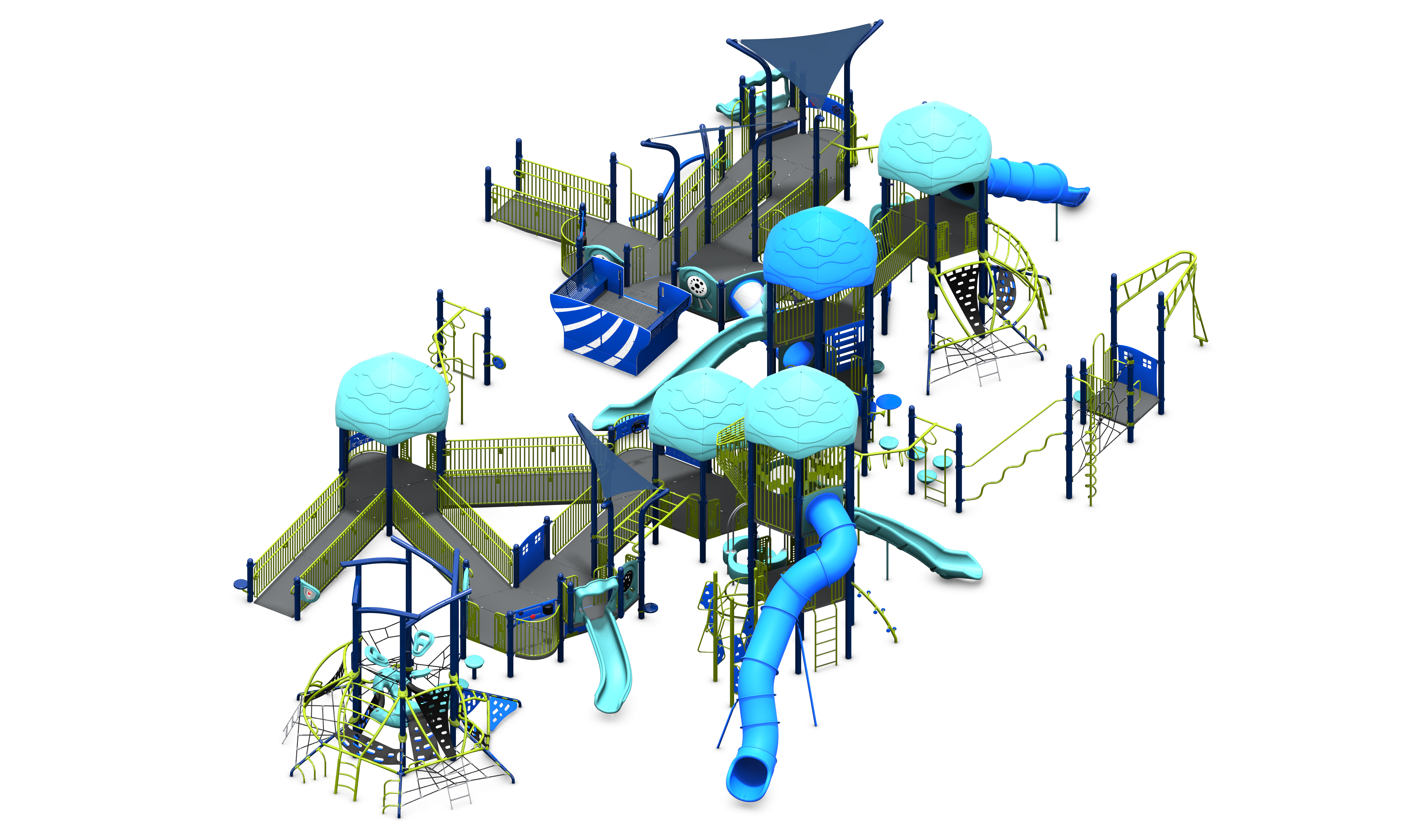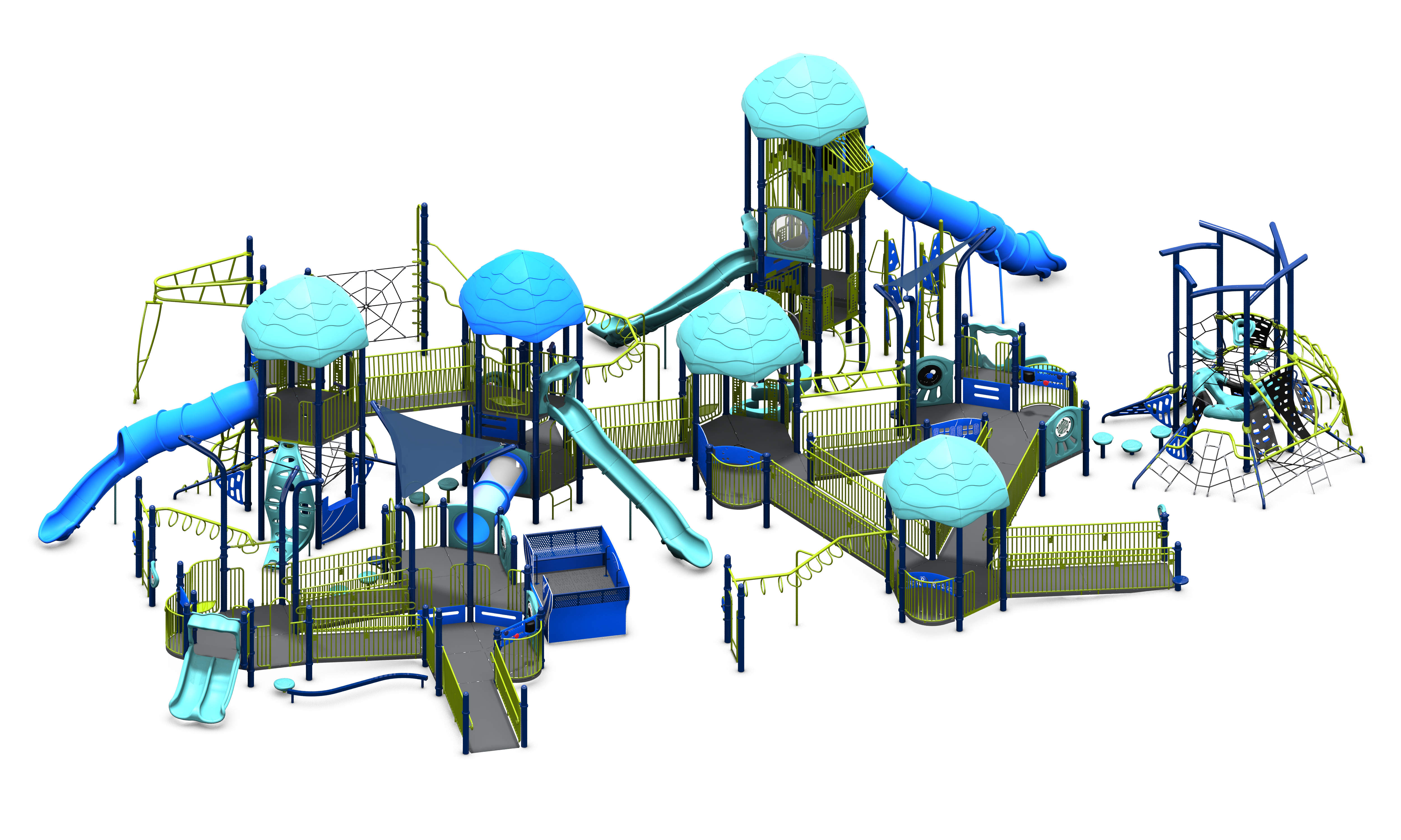Anchored by a Denali Tower and a Parallax Ascent, the Enchanted Grove features over 60 play activities scattered around a rambling, inclusive pathway. Designed for children aged 5-12, this play structure qualifies for two NDS designations.