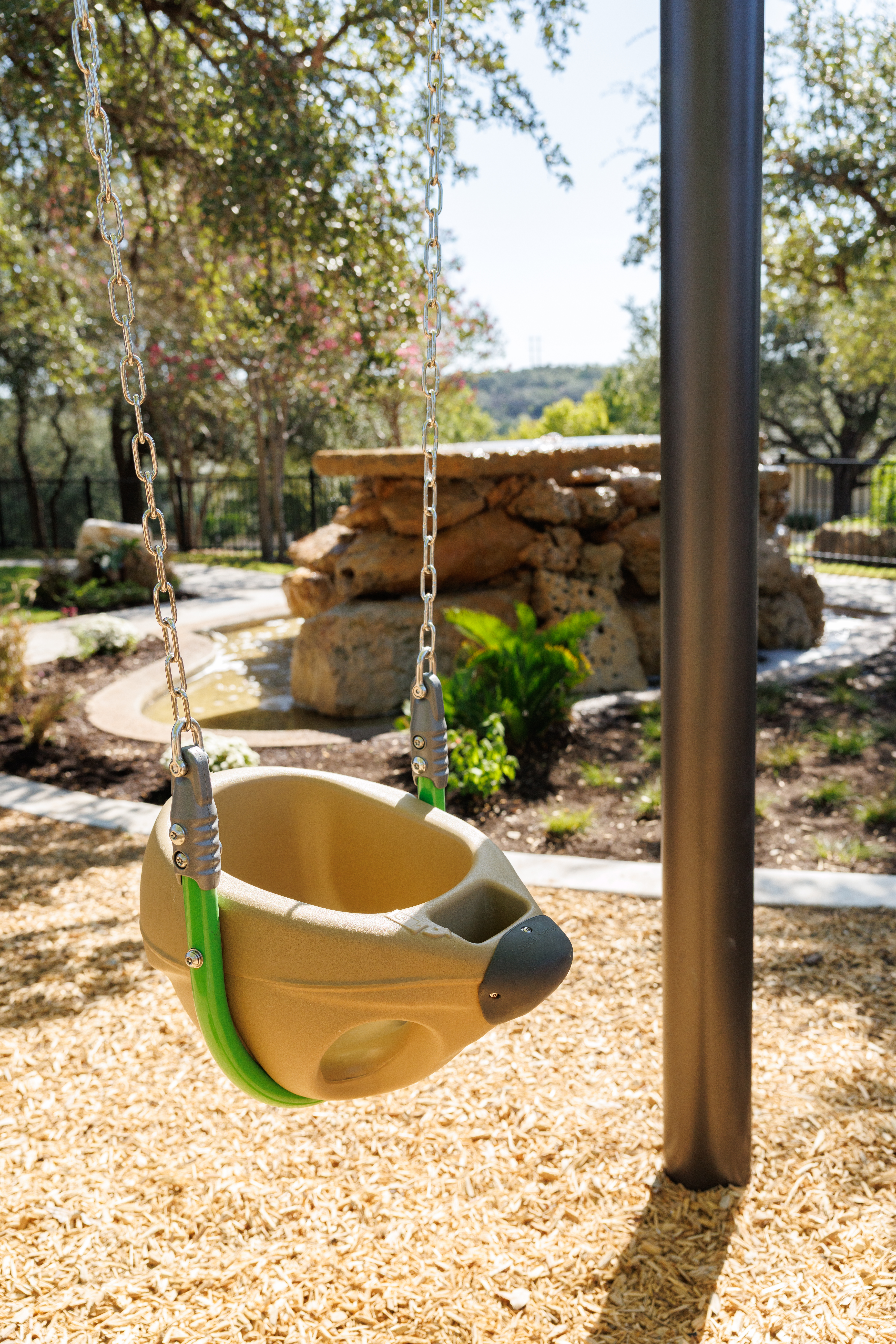 Introducing the Tot SelfieSwing - the new swing that allows parents to capture memories of their child’s glee hands-free! A clever recessed pocket allows parents to place their cell phone in the record mode so that they can share the moment with family and friends. The tot SelfiesSwing include one tot seat, stainless steel chain, swing hangers and hardware. Can be mounted to 2 3/8”, 3 1/2” or 5” top rails.