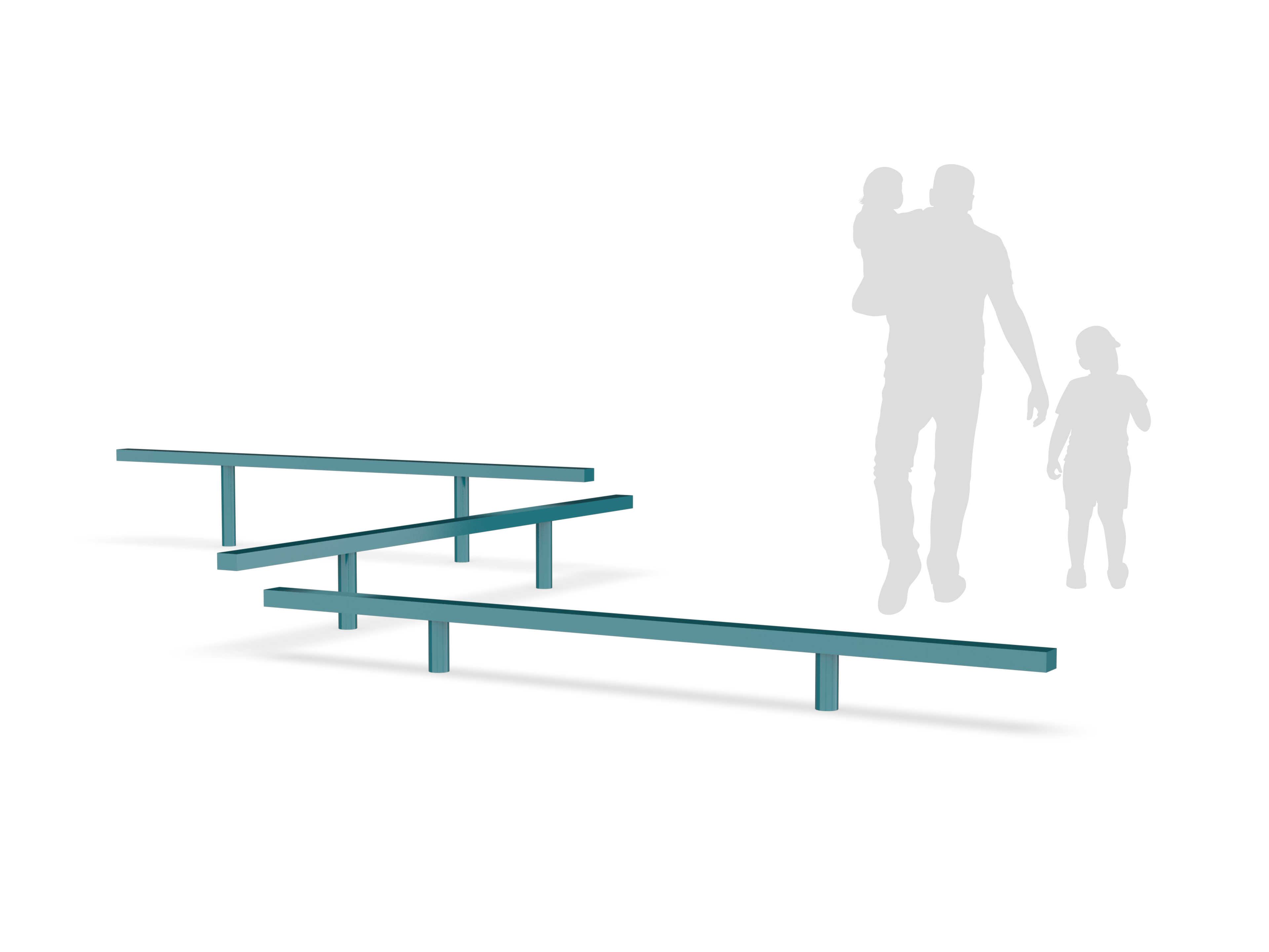 The Triple Straight Balance Beam (3-Level) provides a challenging path for children to navigate on the playground by promoting coordination and balance.