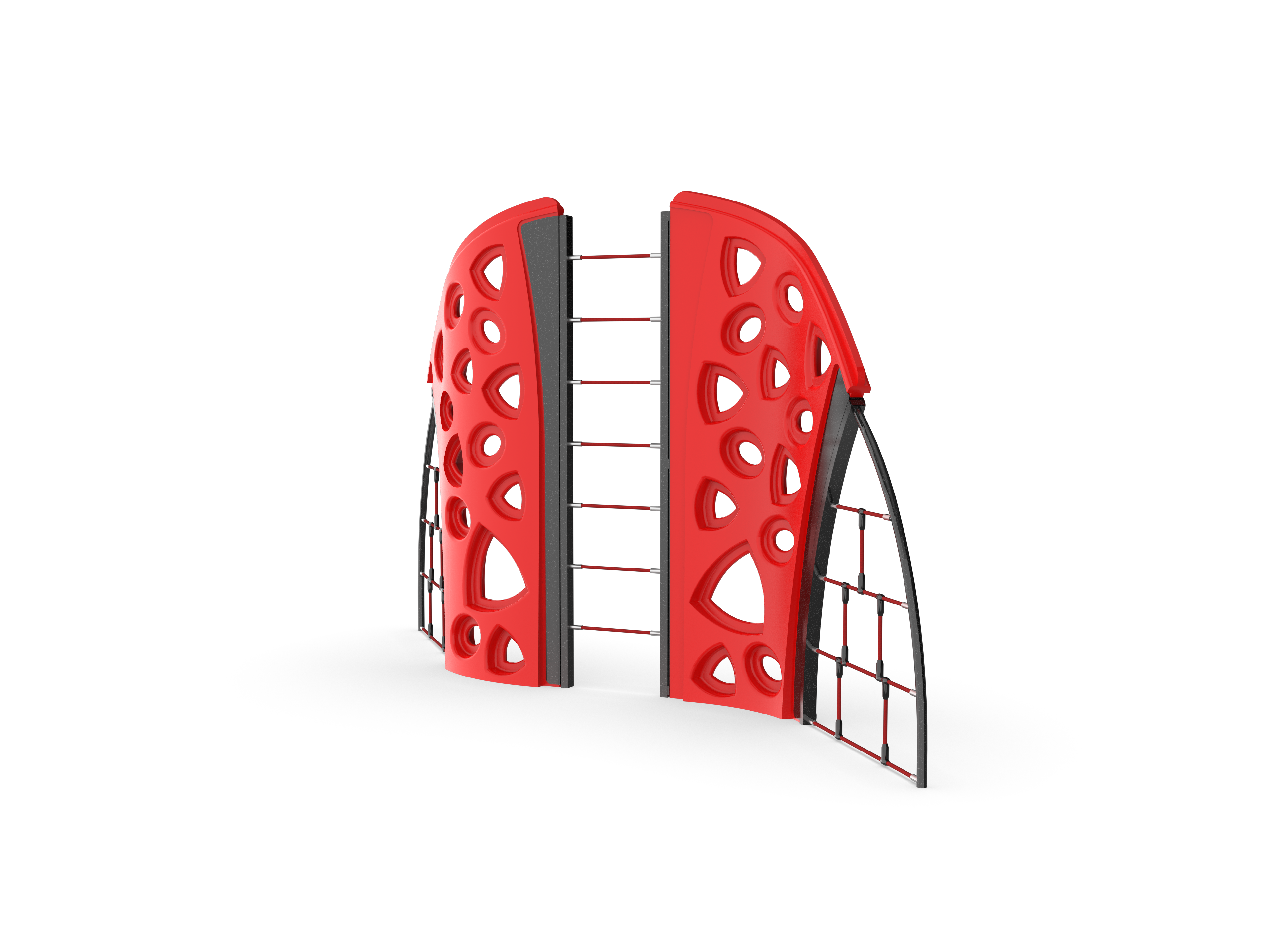 Strategically placed hand and footholds coupled with horizontal cable encourage school age children to maximize their climbing skills on the MaxClimb Keystone Cable Climber.