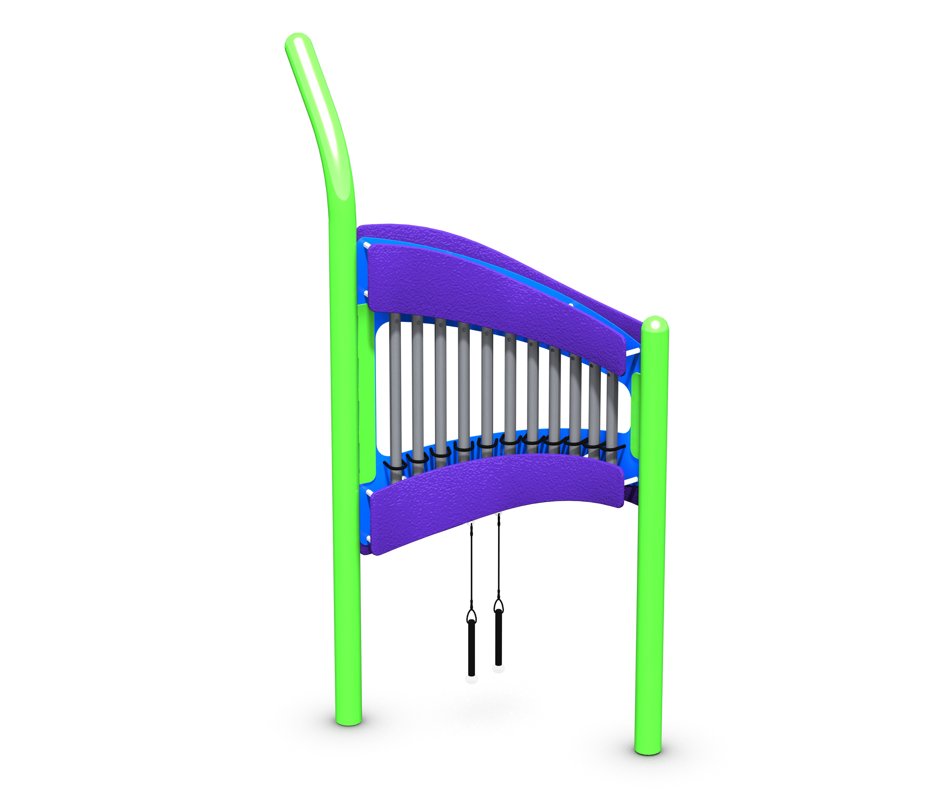 Tuned to A Minor this freestanding Chime can be played from either side allowing many children to play ar once. Chimes can be used by themselves or paired with a second set linearly or in a circle to create a cozy space.