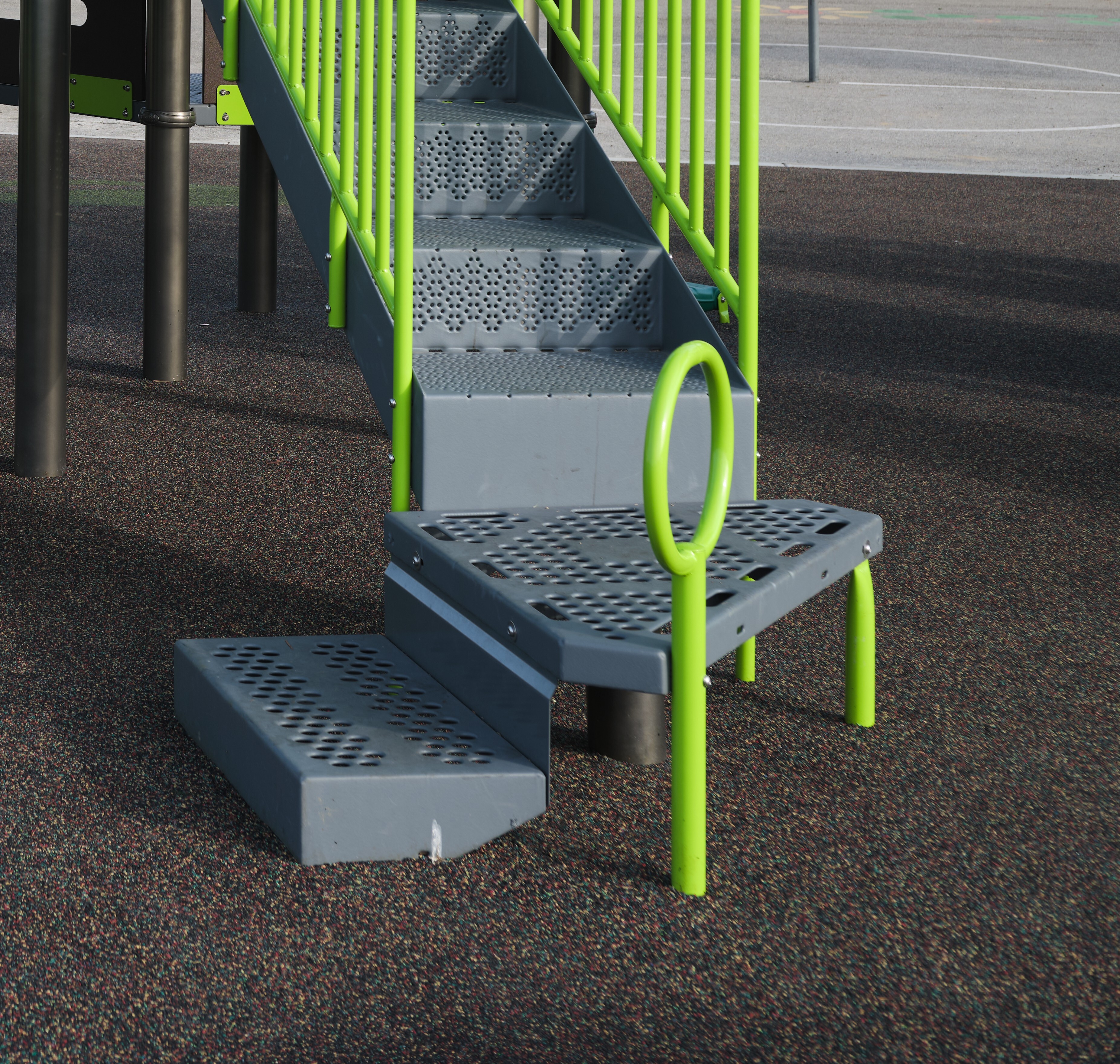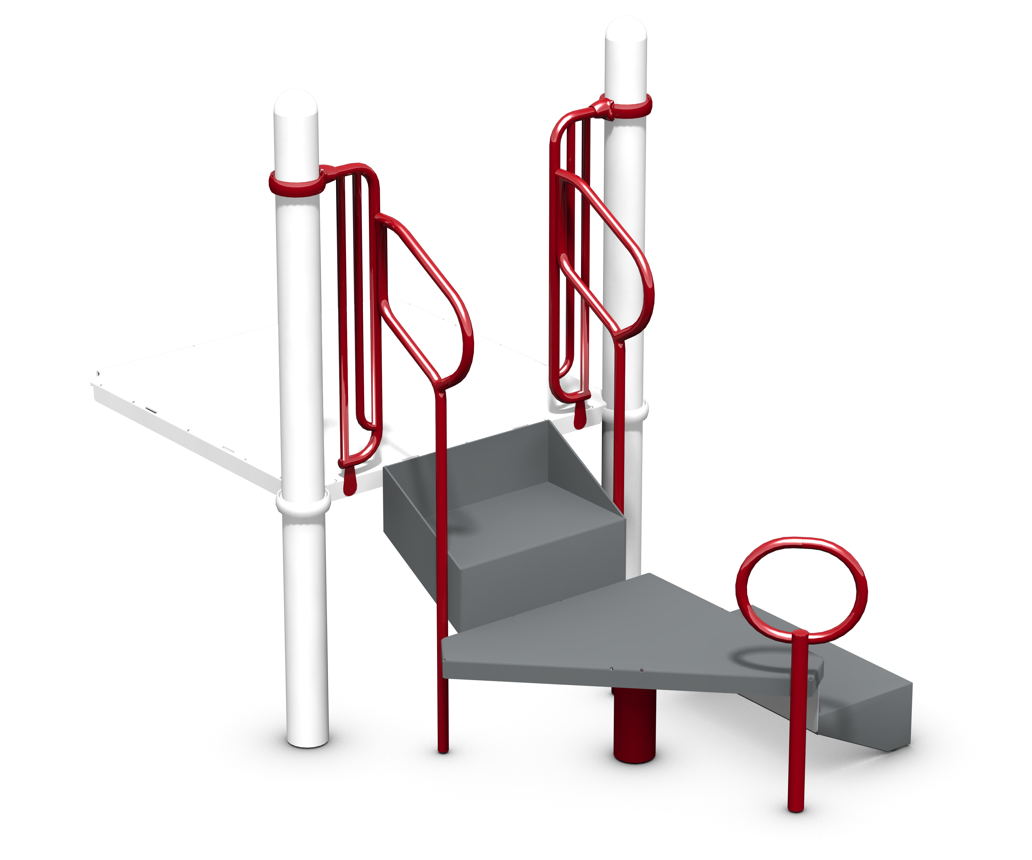 The Triangle Transfer Point allows children in mobility devices to grasp the handhold, aiding them in their transfer to the stairs. Access points will help children increase their gross motor skills, as they make their way onto or down from a structure.