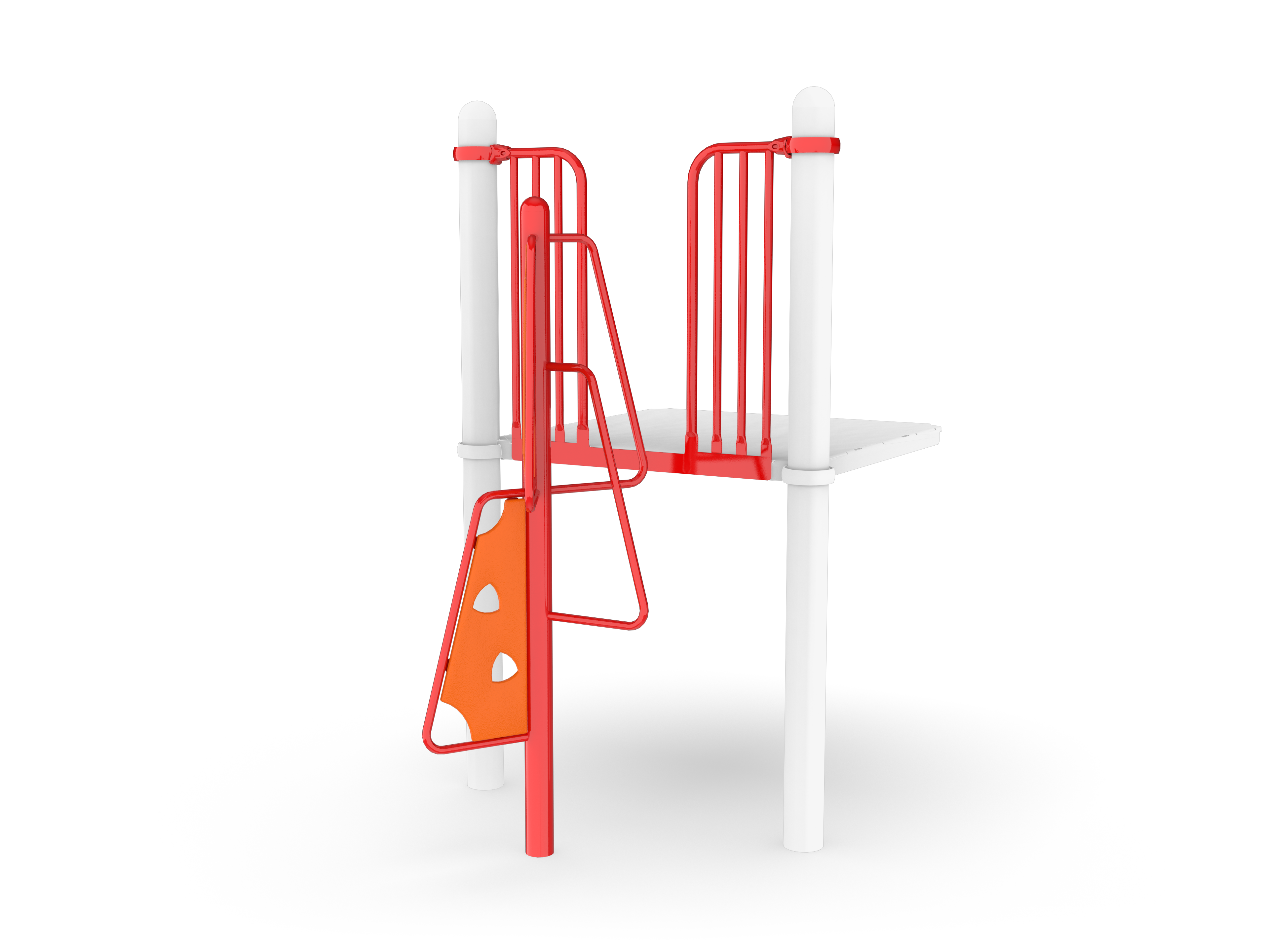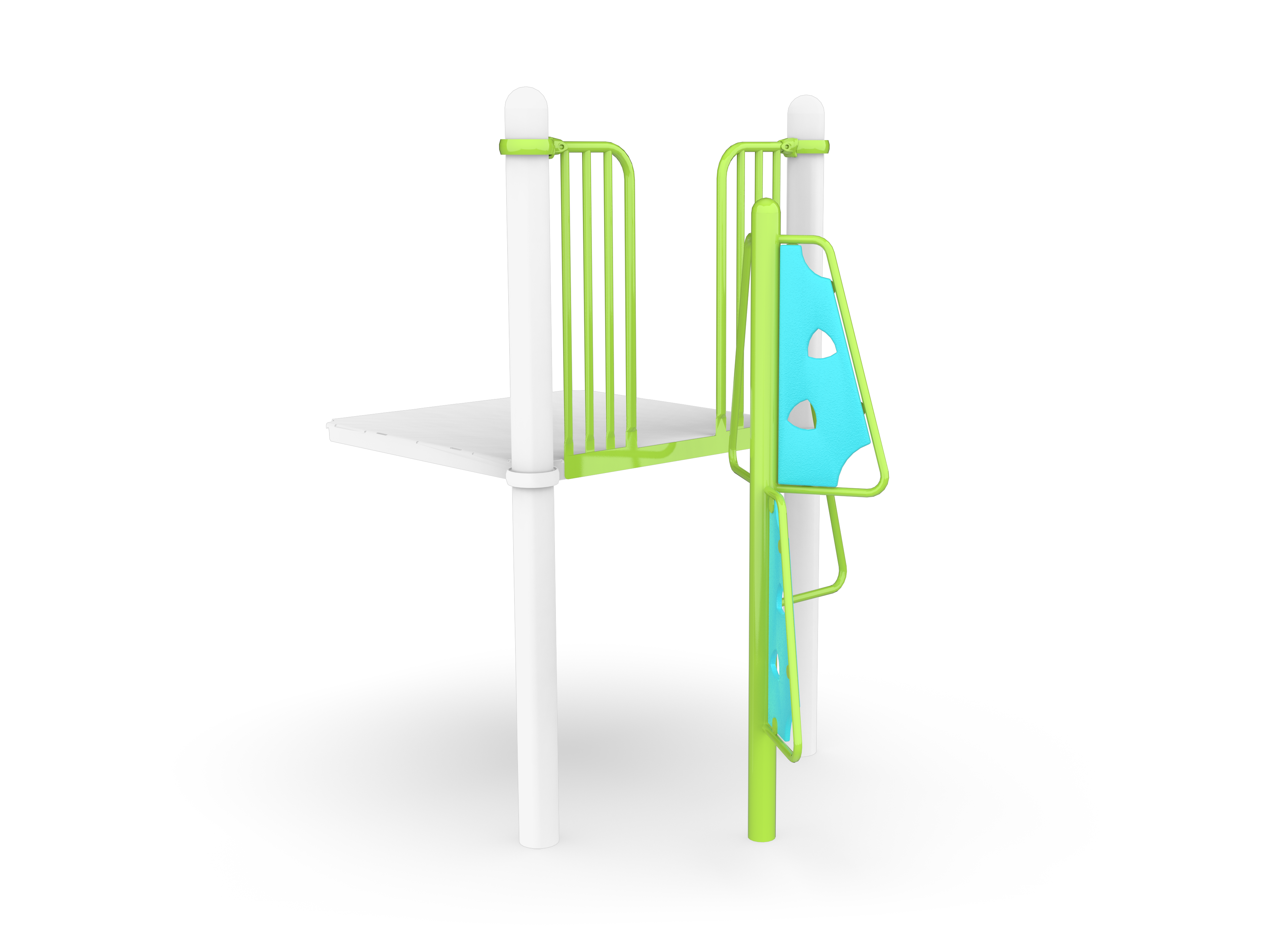 The Alpine Climber is comprised of metal climbers that feature HDPE panels, providing a challenging way to access a deck. Looping patterns allow children to develop confidence through climbing.