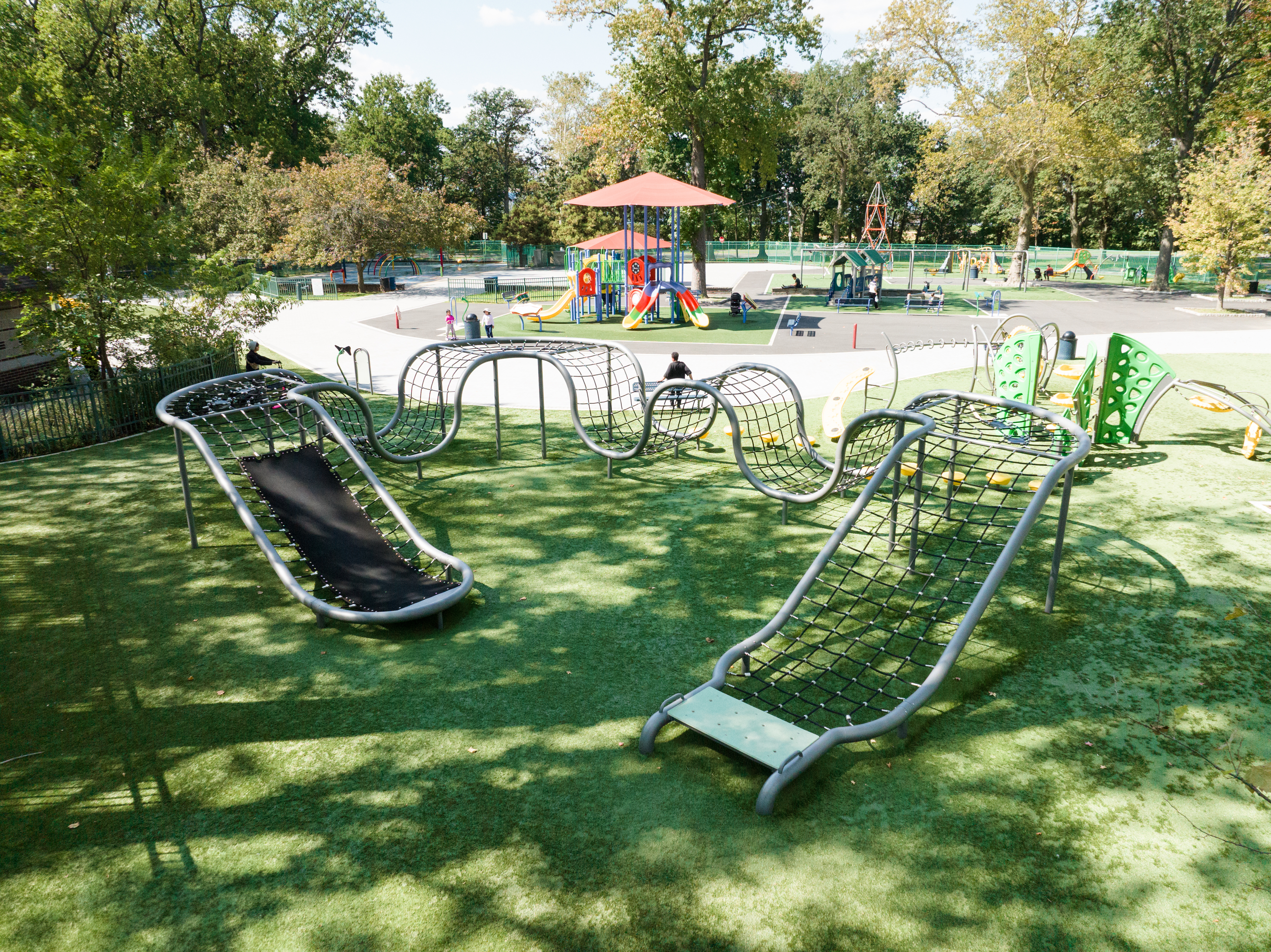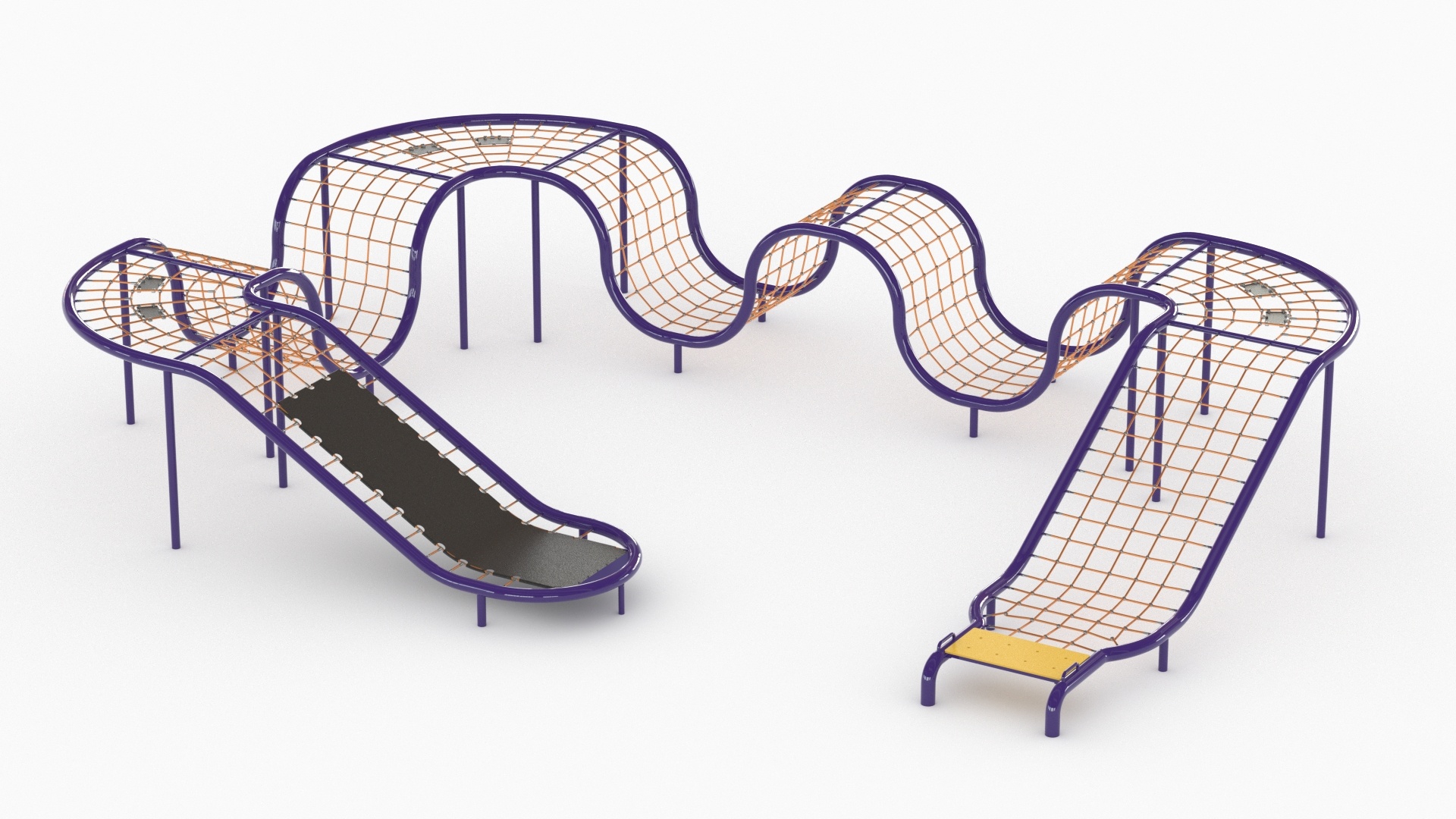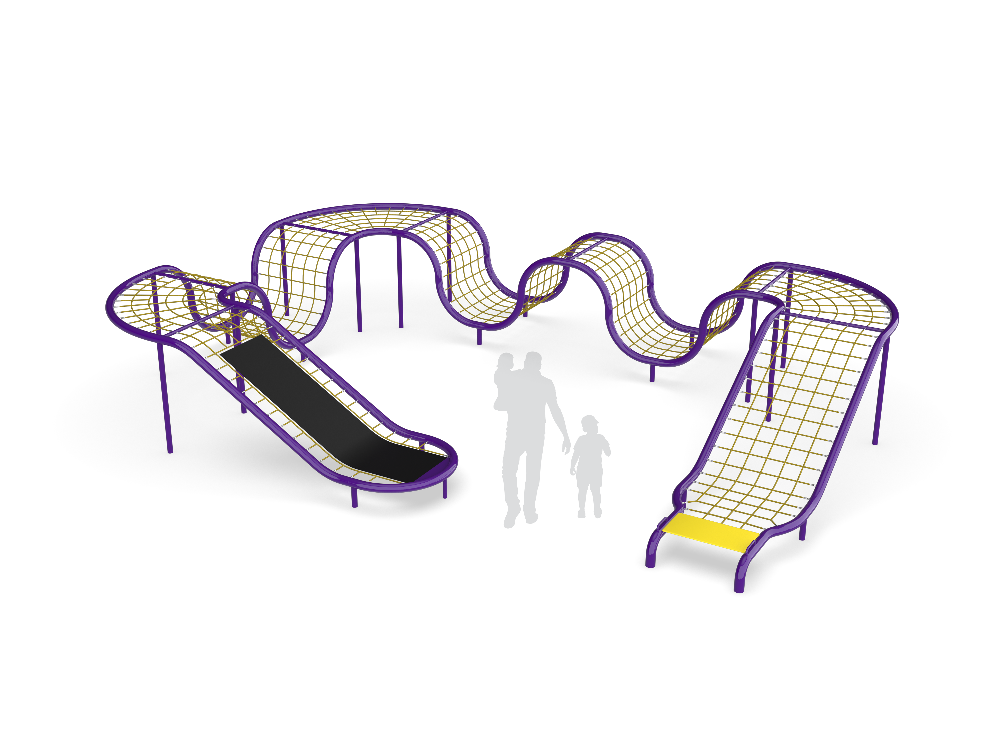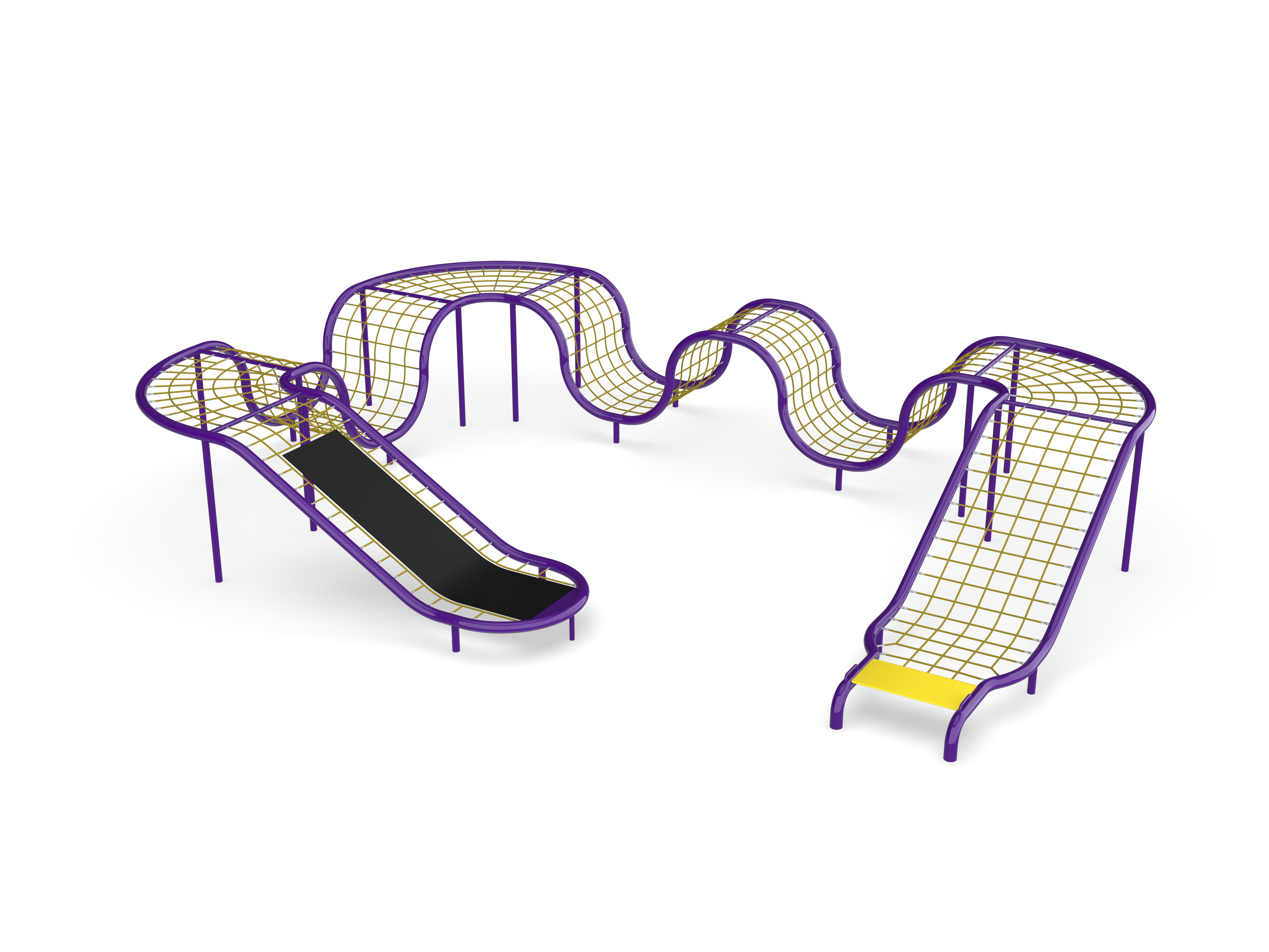 The Constellation Coaster Course creates a cable track with a variety of curves and undulations that promote upper body and core strength as children navigate the challenging ups and downs of this exciting course.