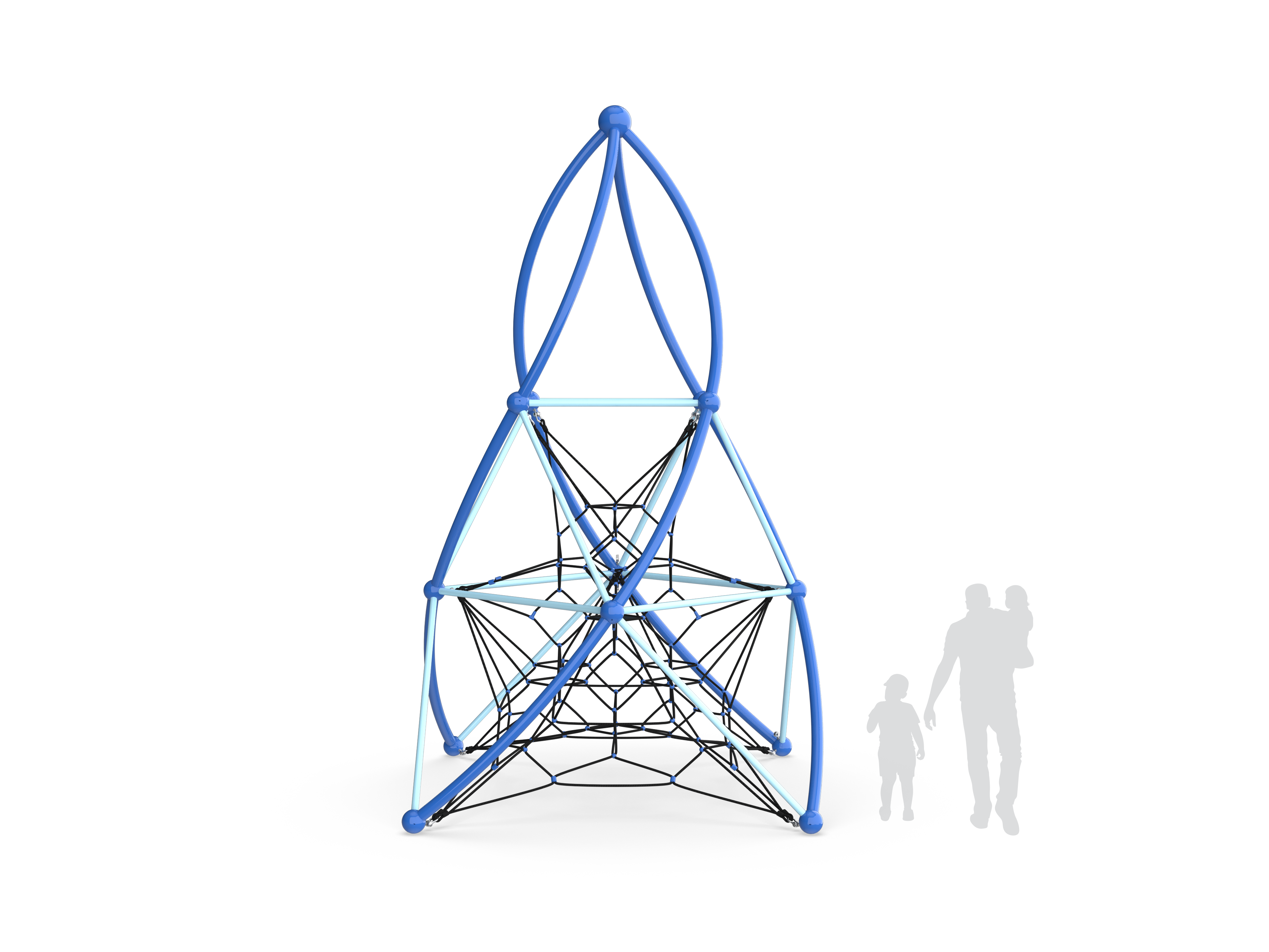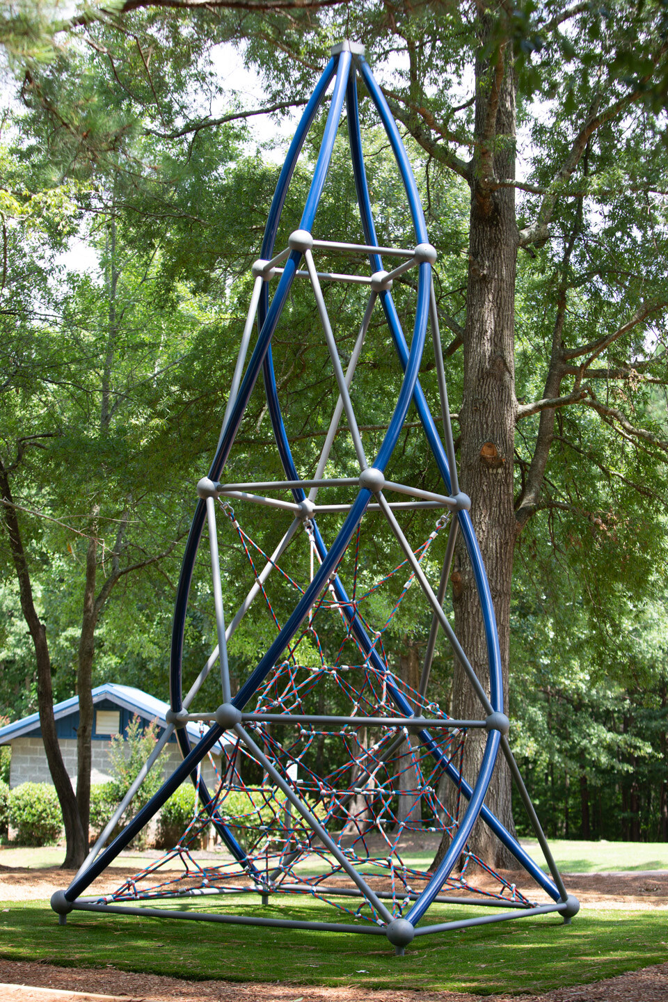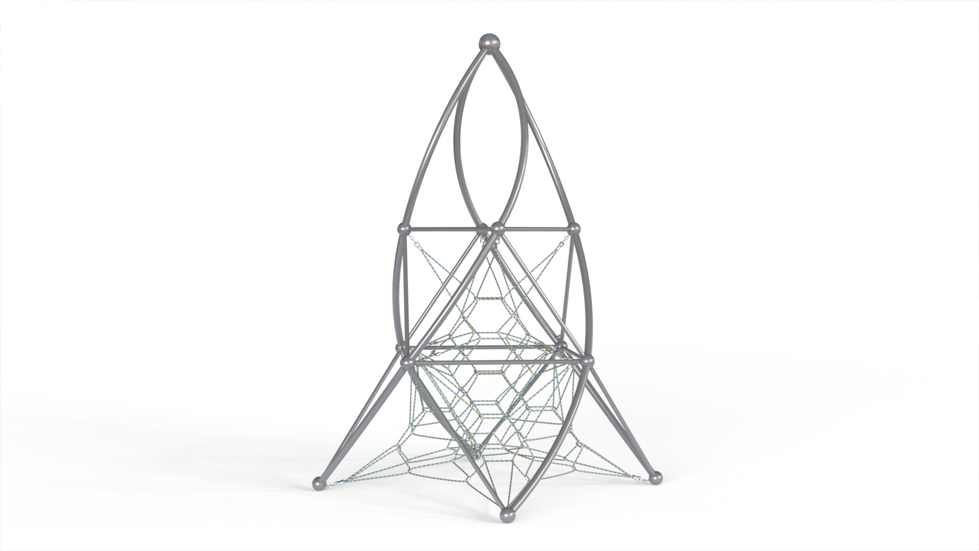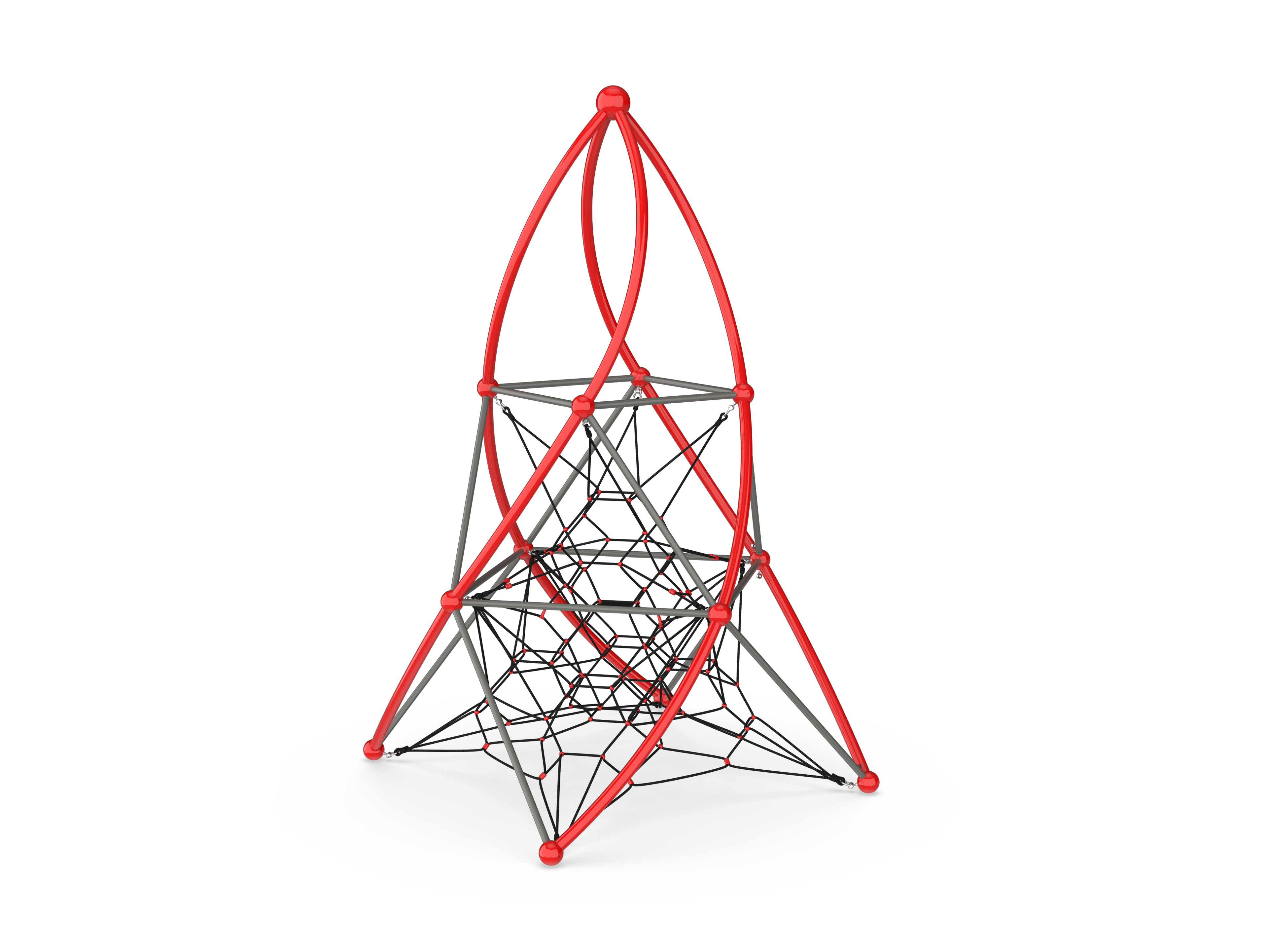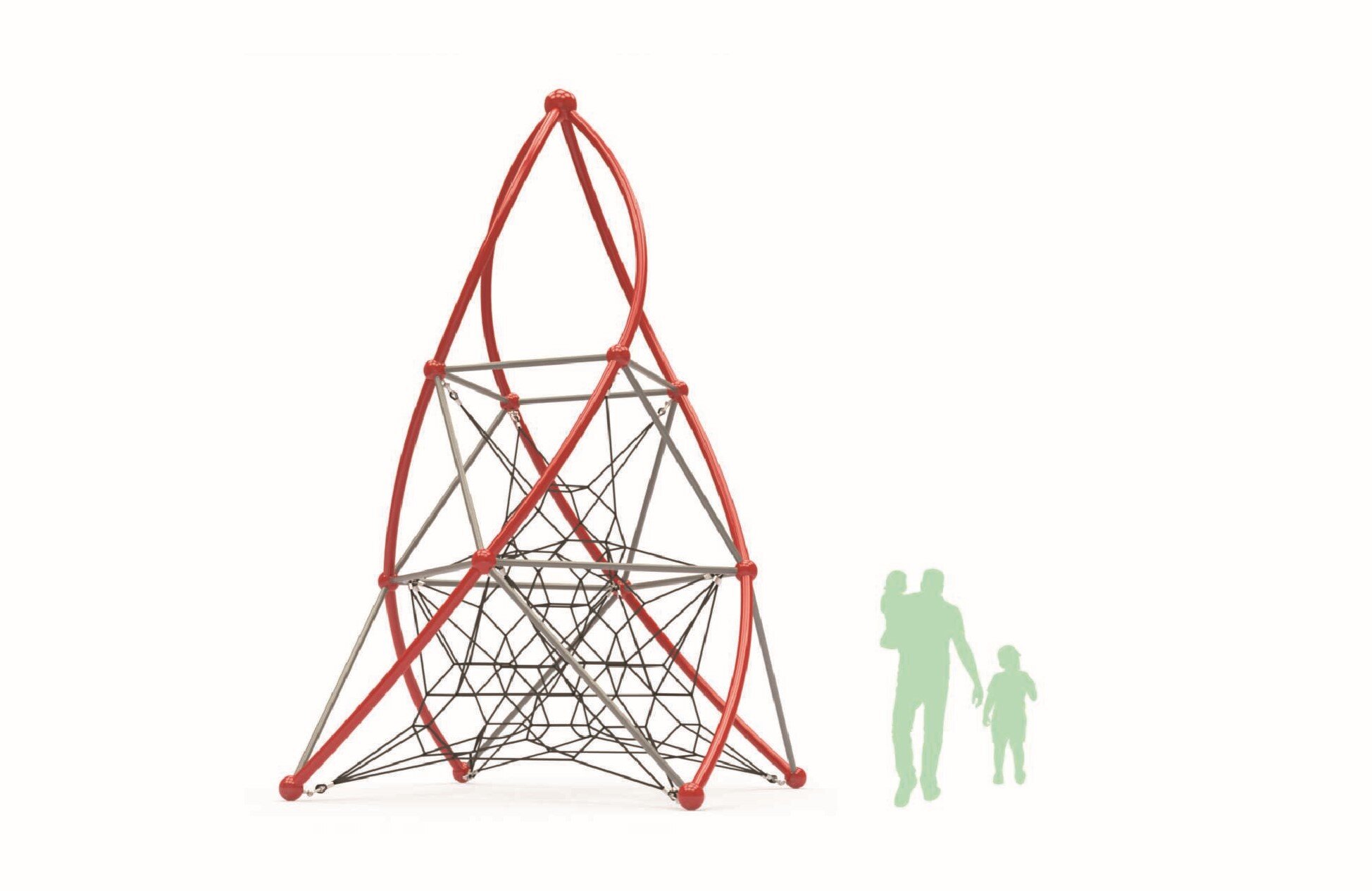 The Pyramid Helix Tower II is a vertical net climber that offers center access to multiple heights. This climber is not only challenging but an aesthetically attractive addition to any recreation space.