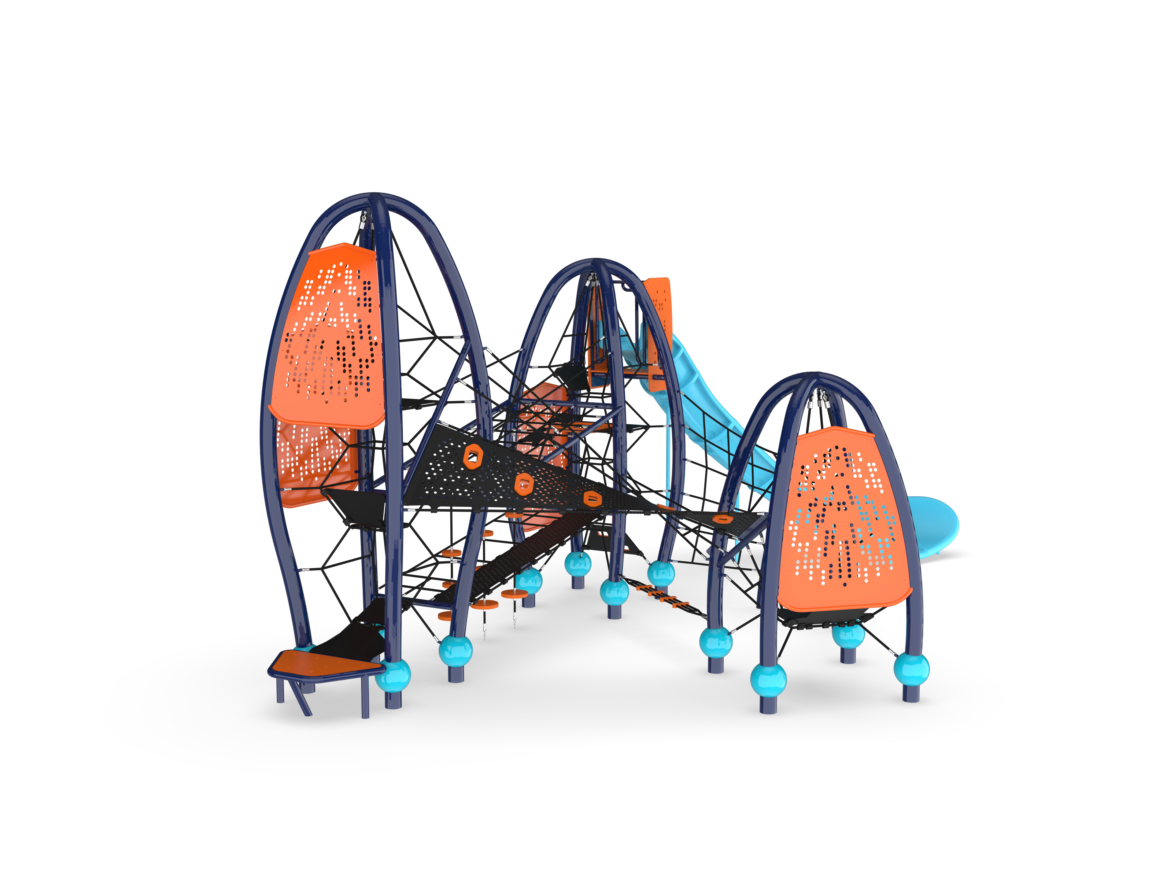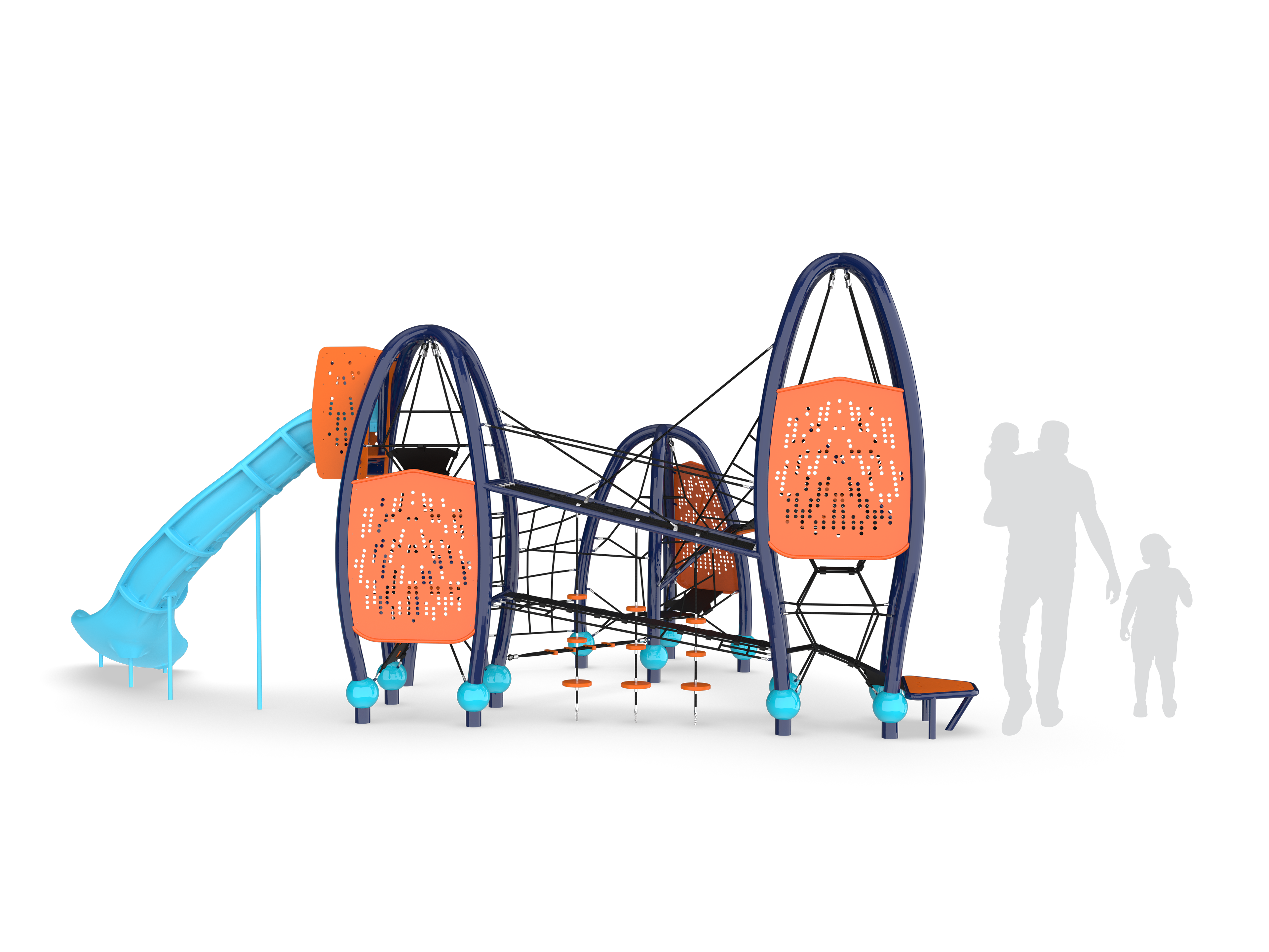CityScape offers climbing fun and cutting-edge customization! Introducing the latest addition to Play & Park Structures exclusive lineup, CityScape features three distinctively shaped towers connected by winding, climbing pathways.